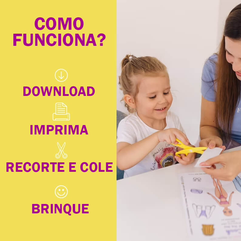 Caso a criança perca as bonecas, basta imprimir novamente as bonecas que precisar.