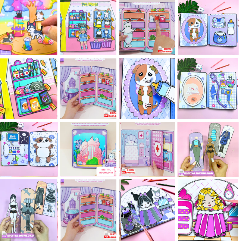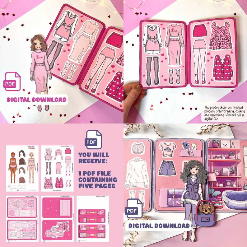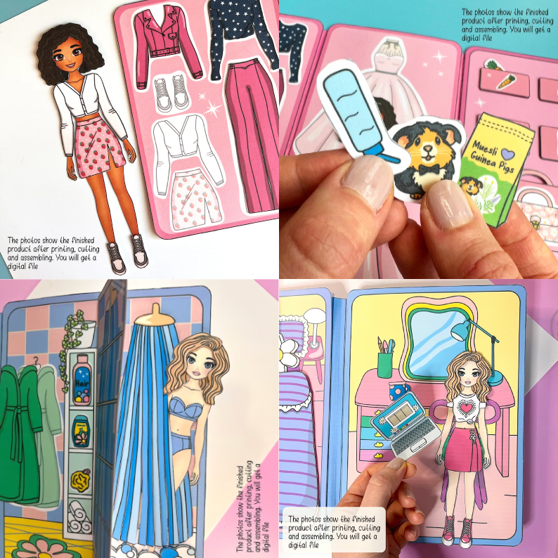 Coleção de Casas de Bonecas de Papel para crianças. Perfeito para crianças que gostam de brincarem de faz de conta, preparar refeições imaginárias, contar histórias, narrar, contos de fadas, vestir bonecas de papel e assim por diante.