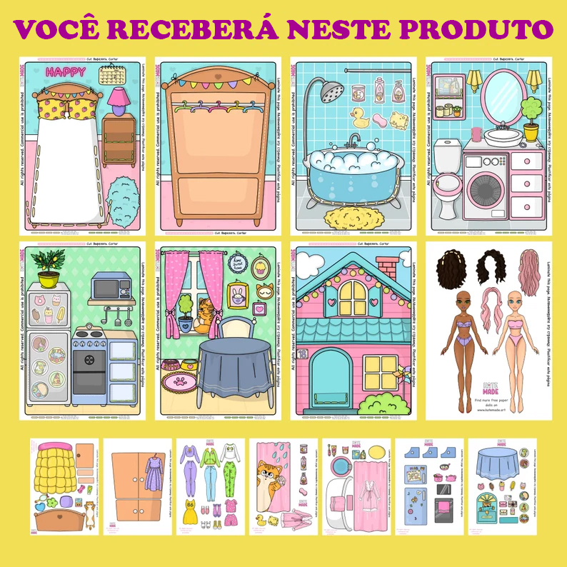 Recorte, monte e deixe a magia acontecer: cenário, bonecas de papel, acessórios — prontinhos para brincadeira!