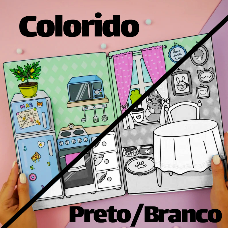 Um livro interativo em papel (PDF digital) para imprimir e montar sua própria casa de boneca completa!