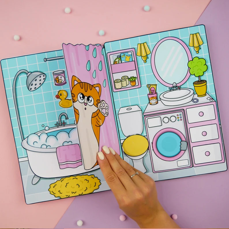 Um livro interativo em papel (PDF digital) para imprimir e montar sua própria casa de boneca completa!