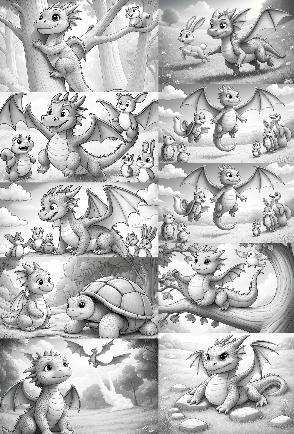 Mergulhe em um mundo encantado com o livro de colorir As Aventuras de Dragolino! Acompanhe Dragolino, um adorável dragãozinho, e seus amigos Tartuga, Pássaro, Lebre e Esquilo em uma jornada mágica cheia de amizade e coragem. Este livro em formato A4, com 10 ilustrações vibrantes e detalhadas, é ideal para crianças acima de 4 anos, que amam colorir e sonhar!