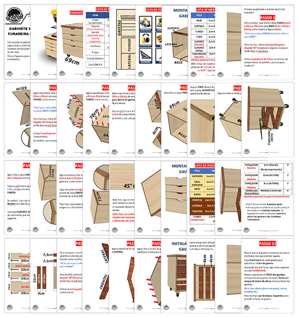 Lista de materiais, medidas e cortes em centímetros, ou seja, facilita muito seu trabalho e o ganho de tempo!